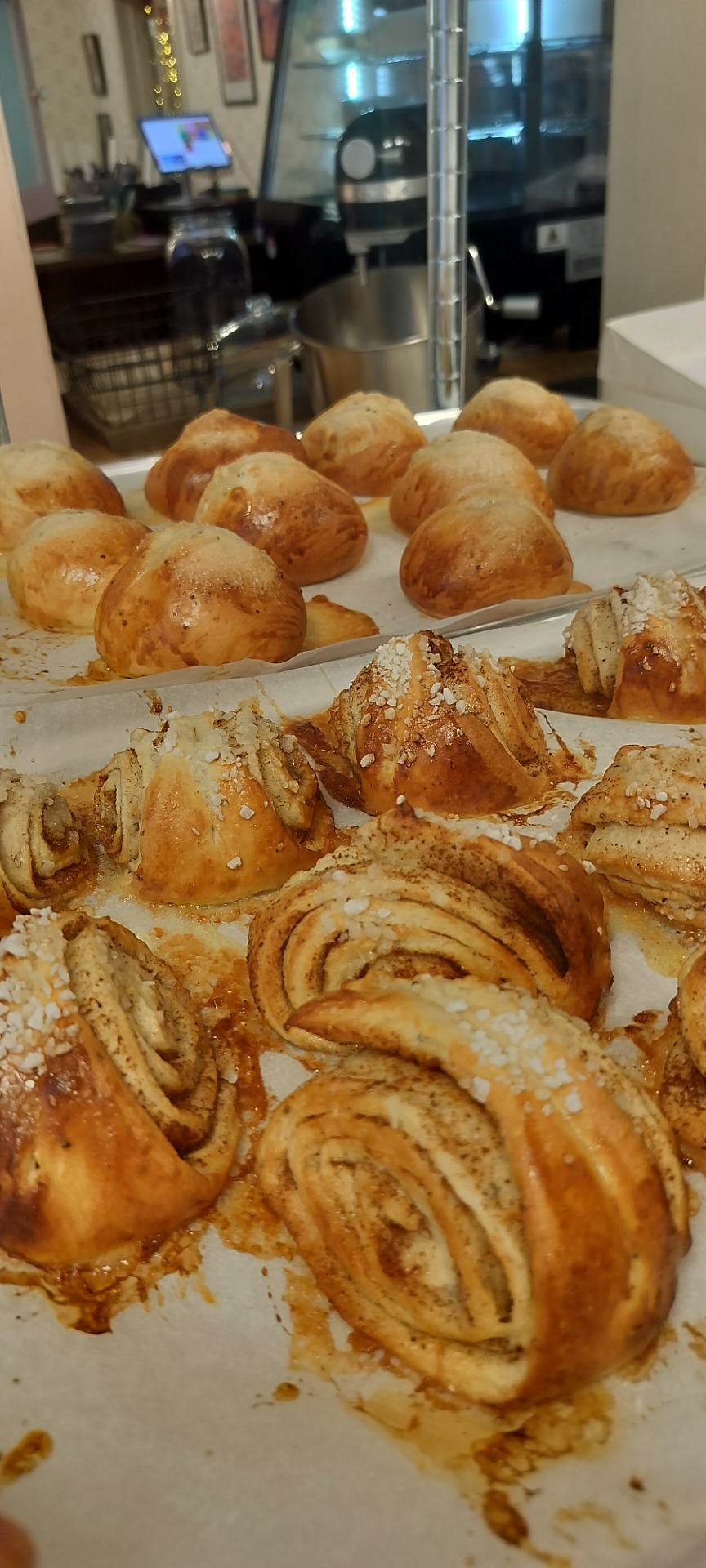 Tuoreet voisilmäpullat 2,50€, korvapuustit 3,00€ (L)